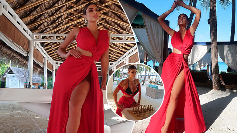 Angela Martini magjeps me elegancën e saj në parajsën tropikale, ndërsa duket sensuale me fustan të kuq