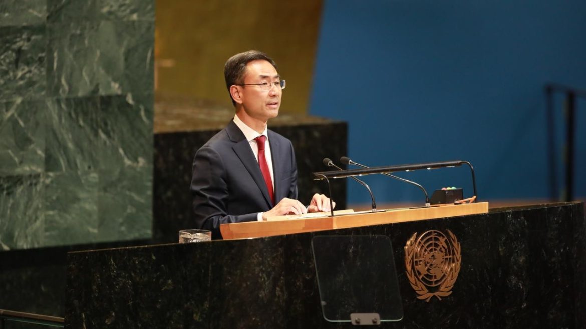 Geng Shuang, zëvendëspërfaqësuesi i përhershëm i Kinës në OKB, prezantoi një projektrezolutë të titulluar “Bashkëpunimi midis Kombeve të Bashkuara dhe Organizatës së Bashkëpunimit të Shangait (OBSh)” (A/79/L.124), në emër të 10 shteteve anëtare të OBSh-së, kur mbajti një fjalim në takimin e 94-të plenar të sesionit të 79-të të Asamblesë së Përgjithshme të OKB-së.