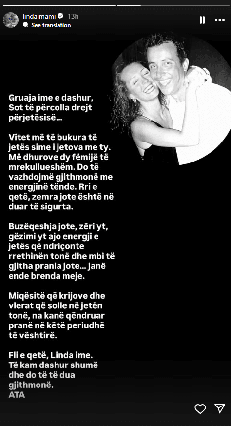 I njëjti i ka bërë një dedikim emocional në rrjete sociale, që më pas u shpërnda në Instagramin e Lindës.