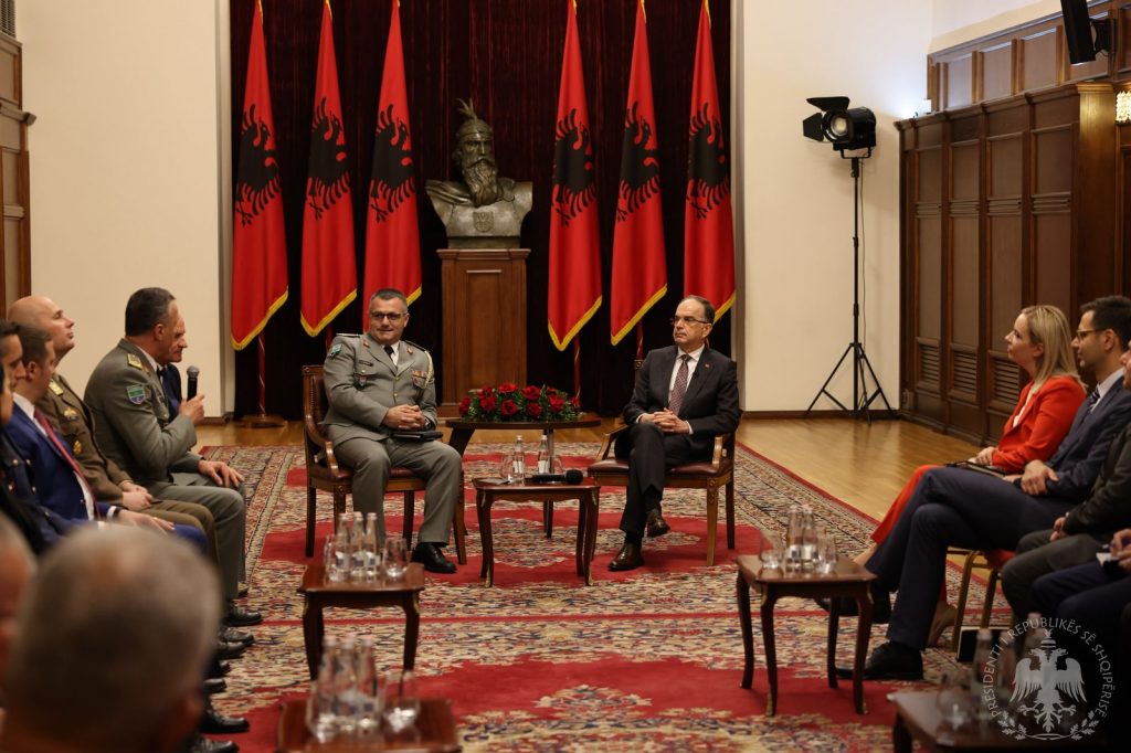 Presidenti i Republikës, Bajram Begaj priti sot në një takim Kursin e Lartë të Sigurisë dhe Mbrojtjes, ku marrin pjesë ushtarakë nga Forcat e Armatosura të Republikës së Shqipërisë, Turqisë, Italisë, Hungarisë, Kroacisë, Kosovës, si edhe përfaqësues nga institucionet e sigurisë kombëtare.