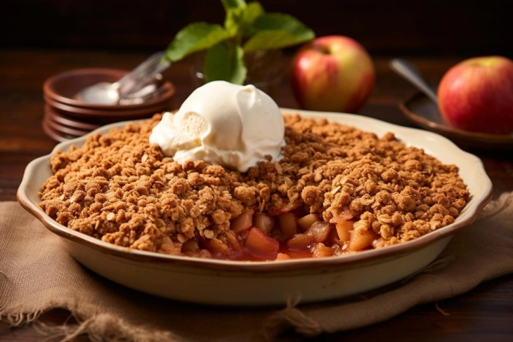 Kjo ëmbëlsirë”crumble” dimërore perfekte për ditët e ftohta – e ngrohtë, aromatike dhe ushqyese. Kombinimi i mollëve lëngshme, kanellës dhe drithrave krokante krijon një ekuilibër midis komoditetit dhe shëndetit, ndëra përgaditet shpejtë dhe lehtë.