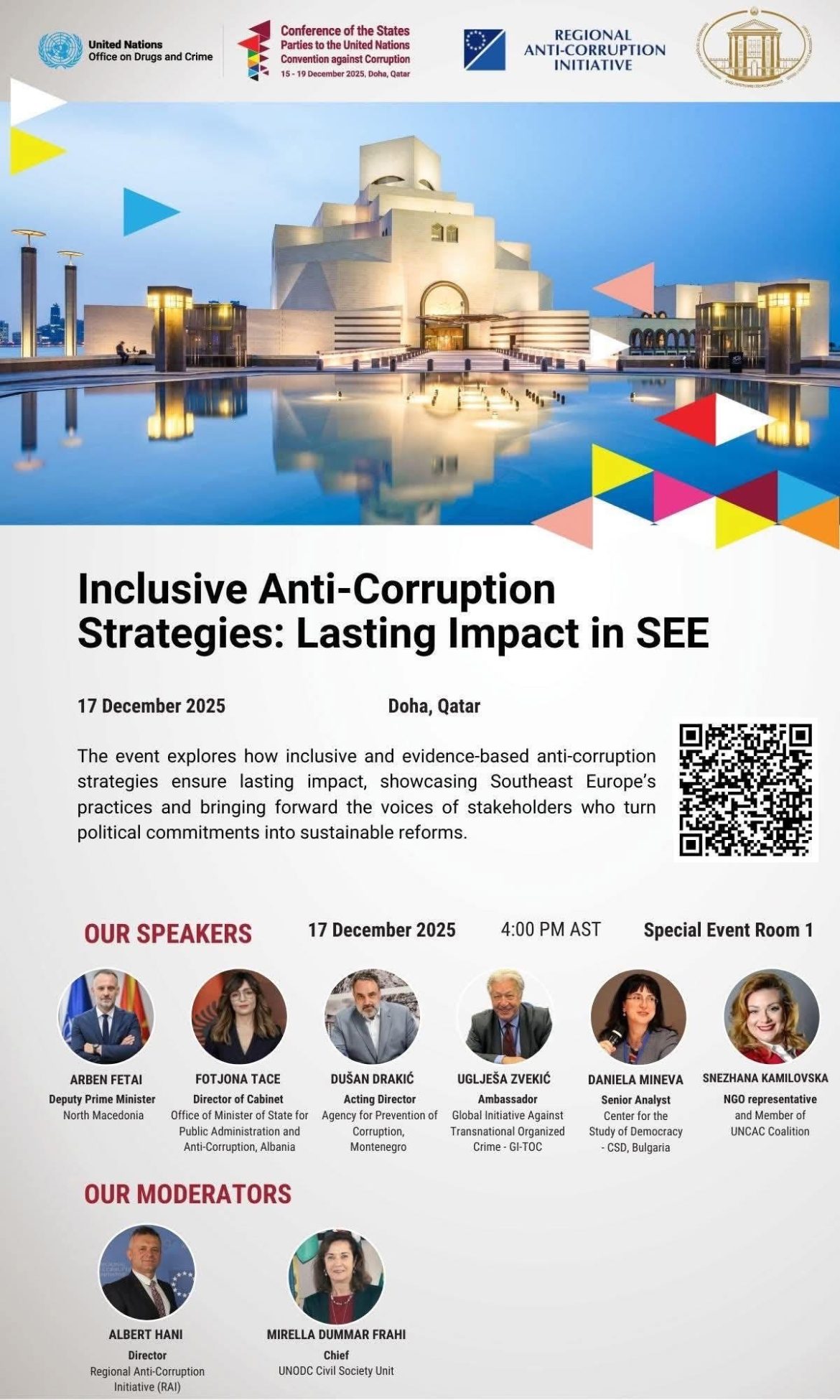 Shkup, 16 dhjetor – Zëvendëskryeministri, Arben Fetai së bashku me UNODC dhe Iniciativën Rajonale Antikorrupsion (RAI), do të jetë nikoqir i panelit me rëndësi për vendin ku do të diskutohet për strategjitë gjithëpërfshirëse kundër korrupsionit.