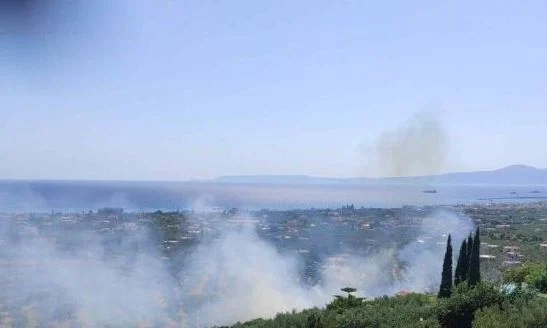 Zjarri ndodhet pranë shtëpive të cilat janë në rrezik dhe u është kërkuar që të largohen nga banesat. Mediat greke bëjnë me dije se dy aeroplanë dhe një helikopter po operojnë nga ajri.
