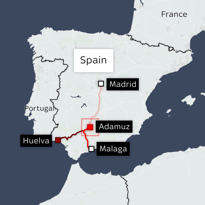 Sipas raportimeve, një tren me shpejtësi të lartë i Iryo që udhëtonte nga Malaga në Madrid doli nga shinat pranë komunës Adamuz në provincën e Kordobas rreth orës 7.40 të mbrëmjes së së dielës, duke kaluar në shinën tjetër ku goditi një tren që po vinte përballë.