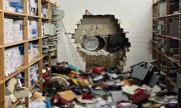 Hajdutët përdorën një shpues të madh për të thyer një kasafortë në një degë banke në rrugën kryesore në Gjermaninë perëndimore dhe për të vjedhur rreth 30 milionë euro në para të gatshme dhe sende me vlerë, tha policia.
