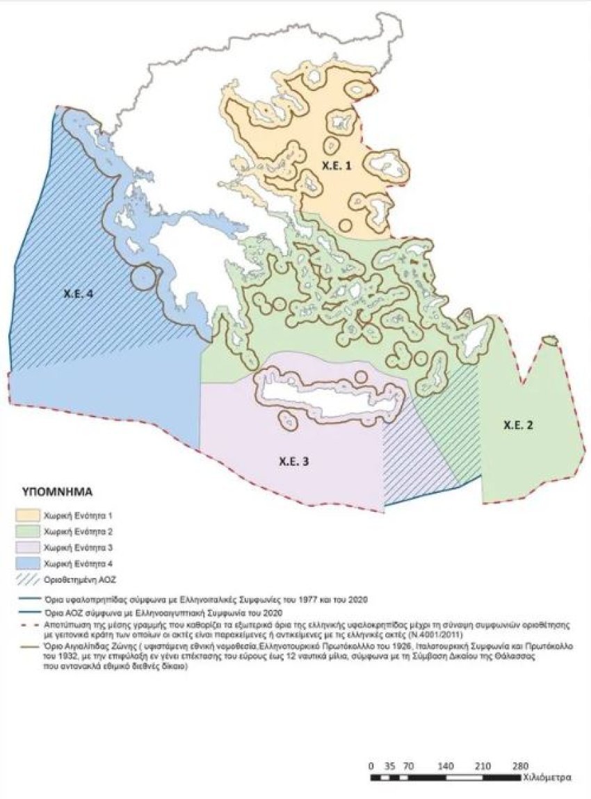 Greqia ka zyrtarizuar ditën e sotme Planin Hapësinor Detar, duke përcaktuar pretendimet për kufijtë e saj detarë. Athina zyrtare ka publikuar një hartë të detajuar të pretendimeve të saj në hapësirat detare, në kufi me Italinë, Turqinë, Egjiptin por edhe me vendin tonë.