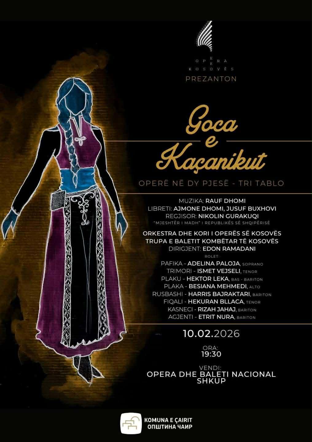 Shkup, 9 shkurt – Izet Mexhiti dhe Komuna e Çairit, nesër, sjellin në Shkup një nga ngjarjet më të mëdha kulturore shqiptare të viteve të fundit. Një trupë gjigante prej mbi 150 profesionistësh nga Trupa e Operës dhe Baletit të Kosovës do të ngjitet në skenën e Operës dhe Baletit Nacional, për të interpretuar për herë të parë në Shkup operën legjendare “Goca e Kaçanikut”.