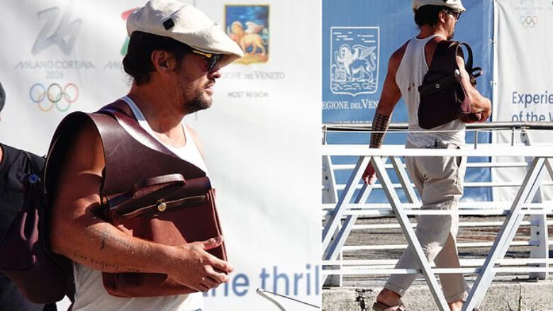 Momoa u fotografua në aeroportin e Venecias, përpara se të hipte në një taksi me varkë që e priste pranë. Në shpatullën e tij të djathtë ra në sy edhe një çantë “man bag”, që i plotësonte pamjen e rastësishme, shkruan DailyMail.