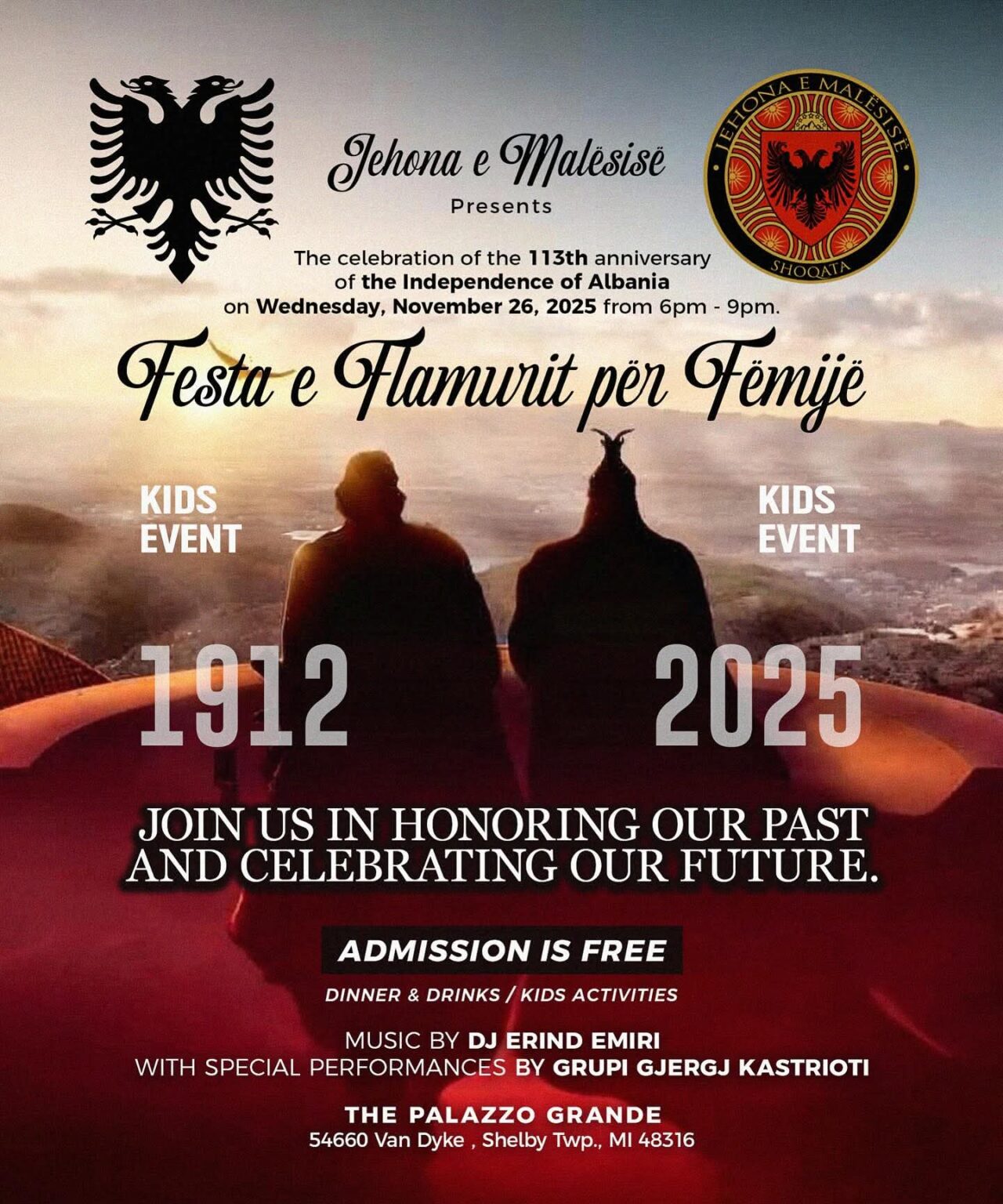 Aktiviteti do të zhvillohet të mërkurën, më 26 nëntor 2025, nga ora 18:00 deri në 21:00, në ambientet e The Palazzo Grande, në adresën 54660 Van Dyke, Shelby Twp, MI 48316.