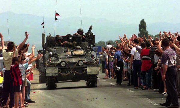 Më 12 qershor të vitit 1999, pas 78 ditë bombardimesh të Aleancës Ushtarake Perëndimore të udhëhequr nga Amerika kundër caqeve ushtarake serbo-malazeze në Kosovë në Serbi dhe Mal të Zi, trupat e NATO-s hynë në Kosovë në misionin paqeruajtës që do të quhej KFOR, duke i dhënë fund luftës gati dyvjeçare midis popullsisë kryengritëse shqiptare të organizuar në radhët e Ushtrisë Çlirimtare të Kosovës dhe forcave pushtuese ushtarake dhe policore serbo-malazeze.
