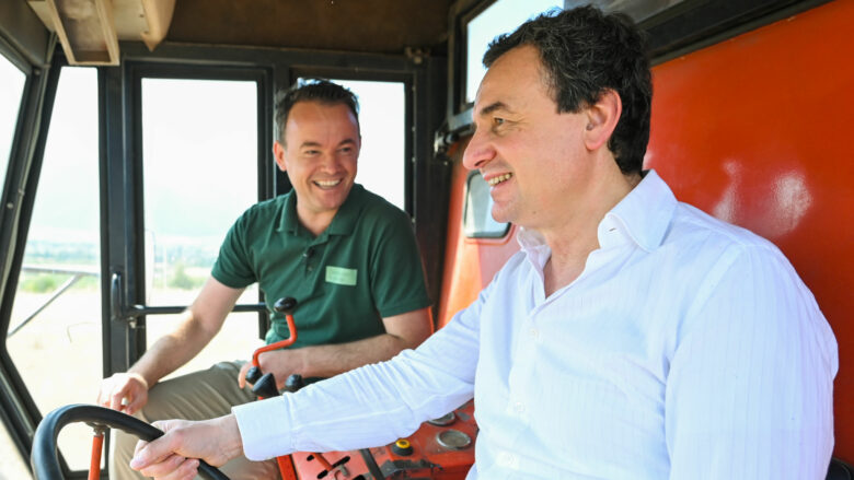“Aty na mirëpriti fermeri Xhemë Beqiraj që ka të mbjellë 25 hektarë grurë. Me punën e zellin e tij, dhe me mbështetjen që e ka marrë nga shteti përmes subvencioneve dhe granteve, tokën që për një kohë të gjatë ishte djerrinë, e ka kthyer në fushë të artë me grurë, që nesër të jetë bukë në sofrën tonë. E përveç grurit ka edhe mbi 11 hektarë të mbjellë me bostan e pjepër”, ka shkruar Kurti.