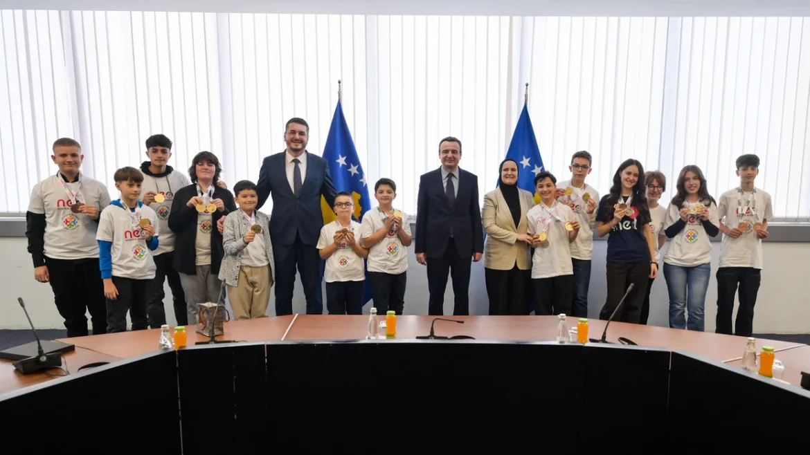 “Kryeministri Kurti dhe zëvendësministri Kelmendi i uruan nxënësit dhe mësuesit për këtë sukses të jashtëzakonshëm dhe dhanë mbështetjen e plotë institucionale në rrugëtimin e tyre shkencor dhe profesional. Gjatë takimit, nxënësit ndanë kujtimet dhe përvojat e tyre më të mira gjatë qëndrimit në Orlando dhe pjesëmarrjes në këtë olimpiadë ndërkombëtare”, thuhet në njoftim.