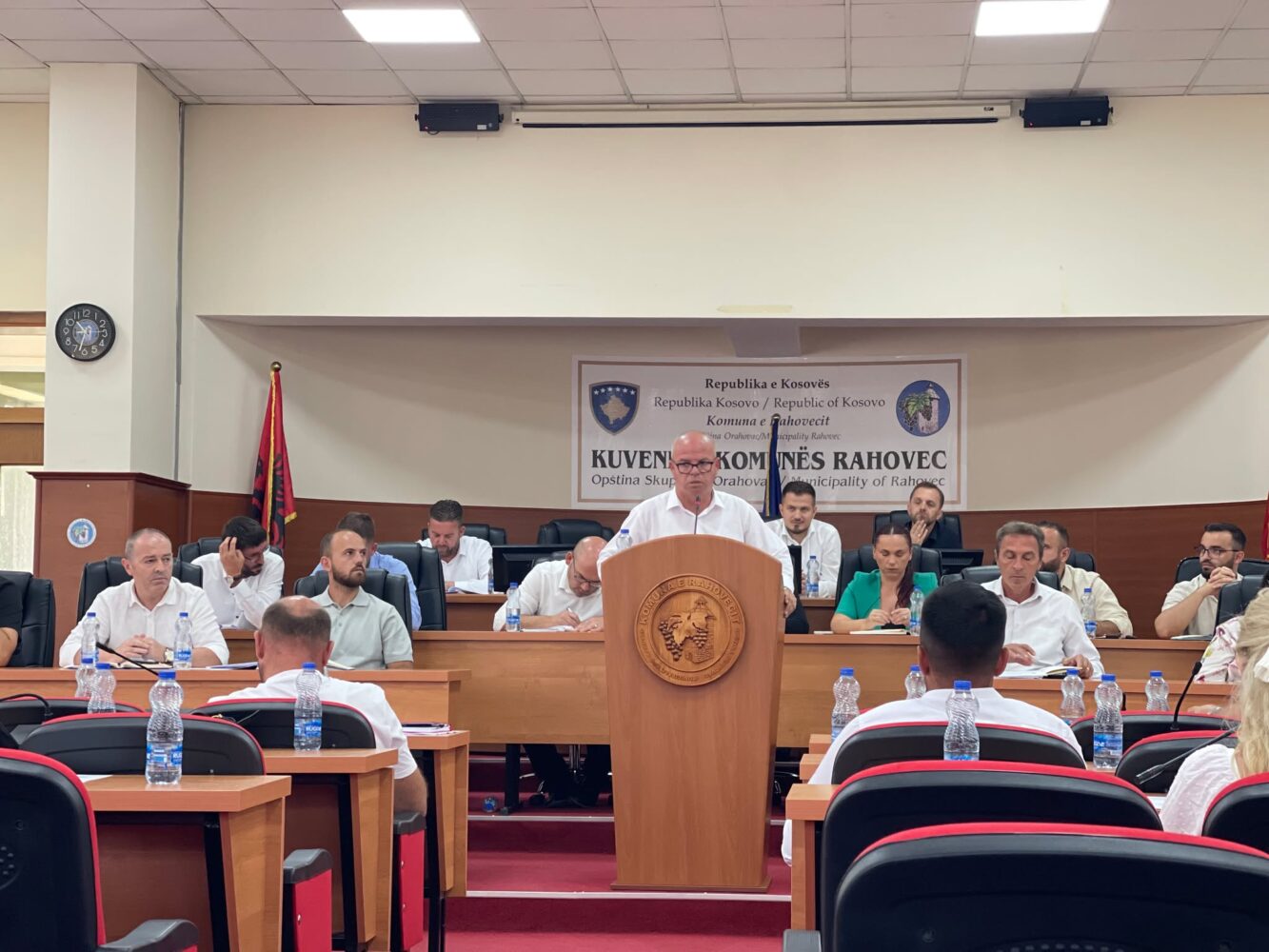 Kuvendi Komunal i Rahovecit, në mbledhjen e mbajtur të enjten, miratoi një deklaratë dënuese ndaj gjuhës së përdorur nga ndihmësdrejtori i të ashtuquajturës Zyrë për Kosovën në Qeverinë e Serbisë, Igor Popoviq, të bërë gjatë javës së kaluar në fshatin Hoçë e Madhe të Rahovecit kundër Ushtrisë Çlirimtare të Kosovës, raporton Ekonomia Online.