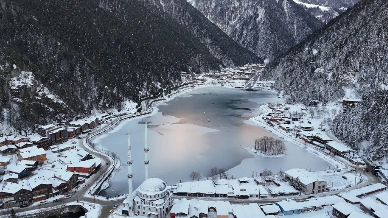 Një pjesë e madhe e sipërfaqes së liqenit Uzungol, në rrethin Çaykara të Trabzonit dhe një nga destinacionet turistike më të vizituara në rajonin lindor të Detit të Zi, është ngrirë për shkak të motit të ftohtë.