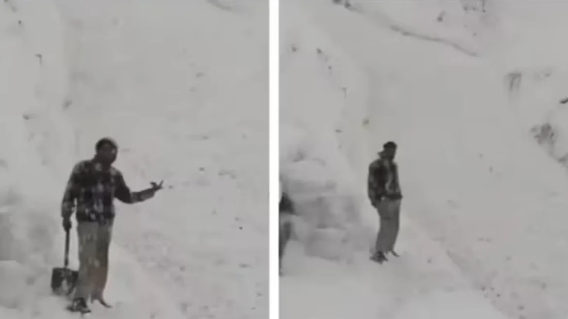 Një skenë marramendëse, por shqetësuese, u zhvillua në fshatin Mindhal të Himachal Pradesh të Indisë, ku reshjet e dendura të borës krijuan një “lumë bore” poshtë një shpati mali.