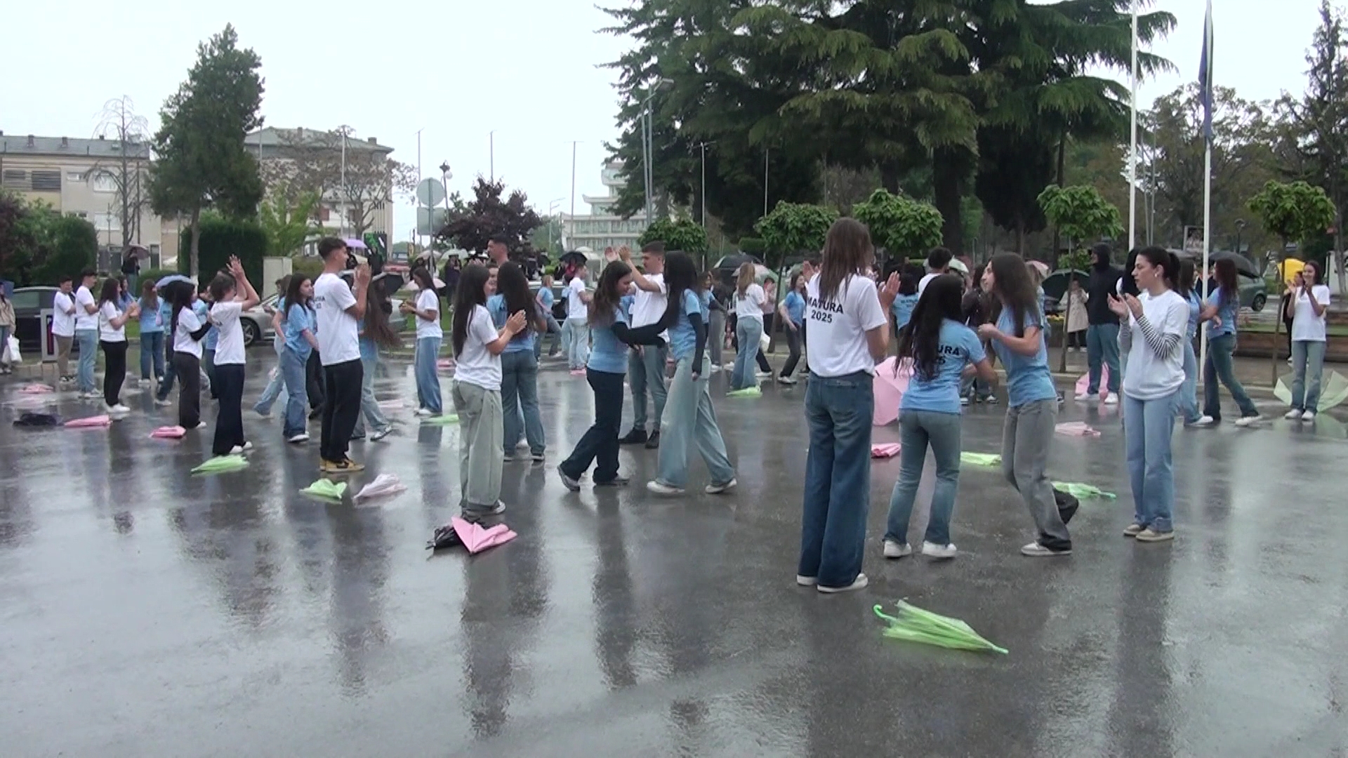 Strugë, 21 maj – Pavarësisht reshjeve të shiut, maturantët e gjimnazit “Ibrahim Temo” në Strugë nuk hoqën dorë nga parada e tyre tradicionale. Një aktivitet që nuk simbolizon vetëm mbylljen e një etape të rëndësishme, por edhe përfshirjen në një proces rajonal më të gjerë.