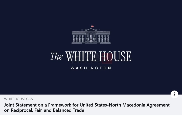 Ai në profilin e Fejsbukut të tij shkruan se sipas marrëveshjes për partneritet me Mbretërinë e Bashkuar dhe mbylljen e dialogut postmonitoring me Këshillin e Evropës pas 26 viteve të plota, mbrëmë vonë Shtëpia e Bardhë ka publikuar një Deklaratë të përbashkët mes SHBA-së dhe Maqedonisë për tregti reciproke.  “Kjo deklaratë paraqet një sinjal të qartë për thellimin e partneritetit strategjik dhe konfirmin për mbështetjen e fortë që Maqedonia e gëzon nga SHBA. Ajo e trason rrugën drejt marrëveshjes gjithëpërfshirëse që do të sigurojë tarifa jo më të larta se 15%, ndërsa për disa produkte dhe industri të caktuara edhe deri në 0%, duke hapur mundësi të reja për eksport, investime dhe rritje ekonomike. Me hapat e tillë e përforcojmë pozitën e Maqedonisë si një partner i besueshëm dhe i parashikueshëm, ndërtojmë ekonomi me standard më të lartë dhe e avancojmë pozicionin tonë ndërkombëtar”, shkruan kryeministri Mickoski në Fejsbuk.