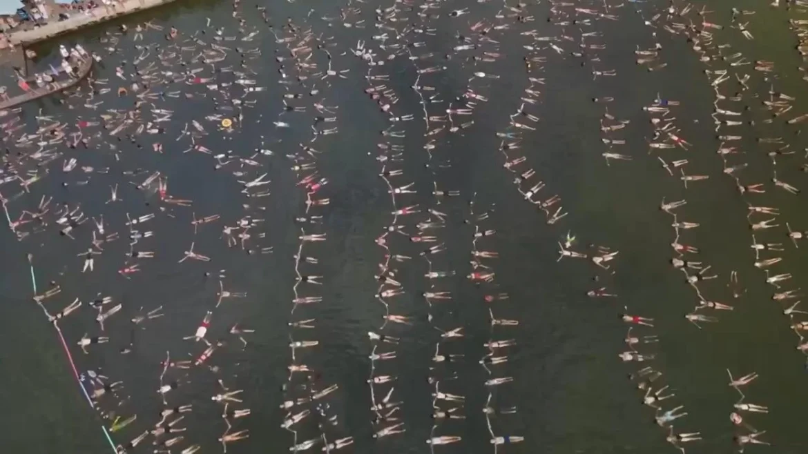 Qindra njerëz u mblodhën në brigjet e liqenit Mar Chiquita të Argjentinës të dielën e kaluar, për të provuar një rekord të ri botëror Guinness për numrin më të madh të njerëzve që notojnë njëkohësisht.