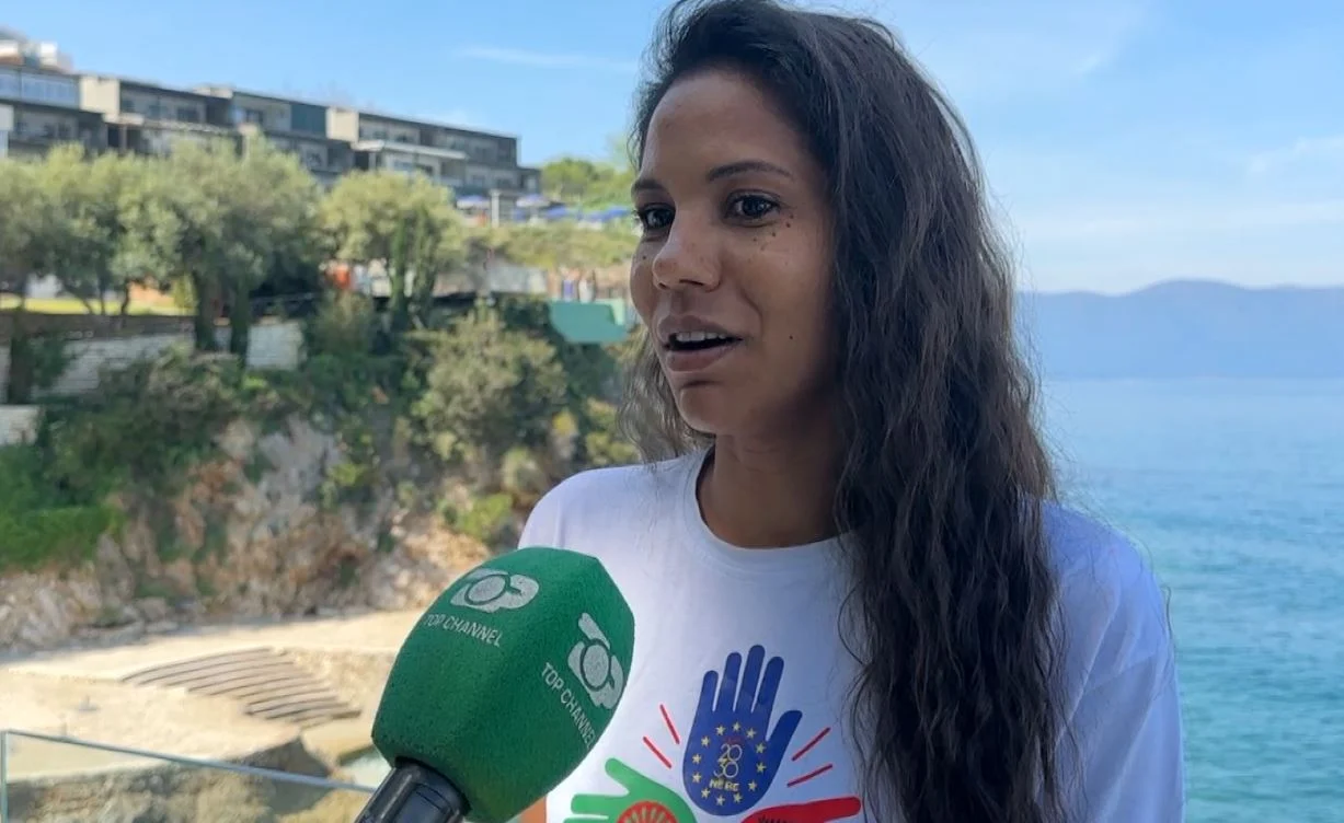 “Janë tre duar, flamuri shqiptar, flamuri Rom dhe flamuri i BE, Mesazhi është që të luftojmë për të shkuar drejt BE”.