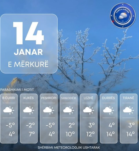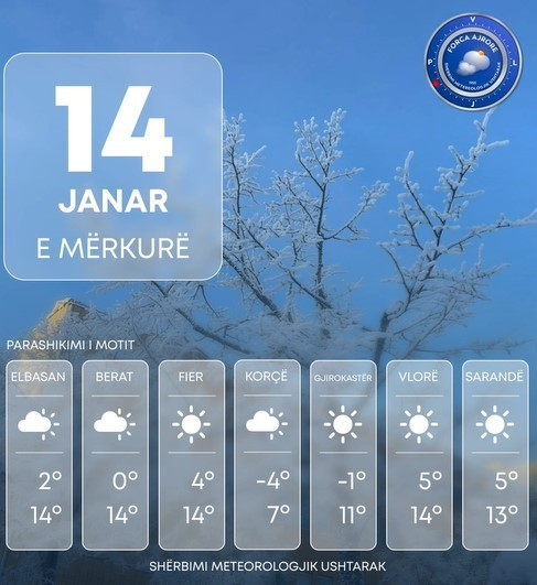 Shërbimi Meteorologjik Ushtarak bën të ditur se Shqipëria të mërkurën do të ndikohet nga kushte atmosferike të qëndrueshme.