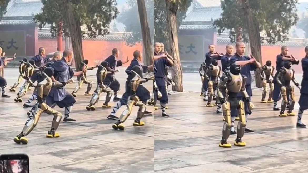 Në pamjet që janë bërë virale, robotët mund të shihen duke lëvizur në sinkron me murgjit Shaolin.
