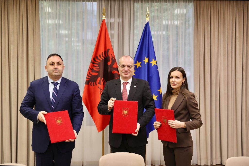 Ministri për Evropën dhe Punët e Jashtme, Igli Hasani, ministri i Brendshëm, Ervin Hoxha dhe administratorja e Përgjithshme e kompanisë “IdentiTek”, Freskida Halilaj nënshkruan sot marrëveshjen e bashkëpunimit “Për pajisjen e shtetasve shqiptarë me dokumente biometrikë, në Zyrat e Aplikimit të Përfaqësive të Republikës së Shqipërisë”.
