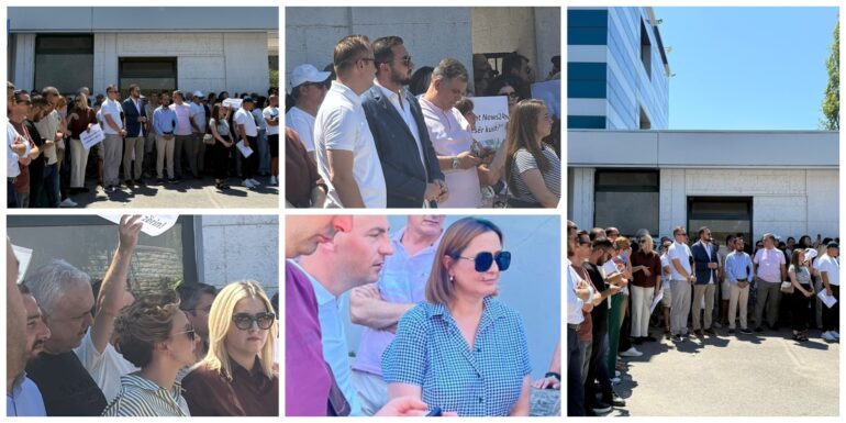 Në protestën e zhvilluar sot në mesditë para godinës së News24, kundër mbylljes së sinjalit të transmetimit dhe moslejimit të gazetarëve të punojnë në ambientet e punës, ishin të pranishëm vec gazetarëve të Focus Media News dhe përfaqësues të opozitës, si kryetarja e komisionit të medias deputetja e PD Ina Zhupa, deputetët Klevis Balliu, Blendjon Nallbati, Erisa Xhixho, Tedi Blushi si dhe ish-deputetët Ervin Salianji dhe Dhurata Çupi.
