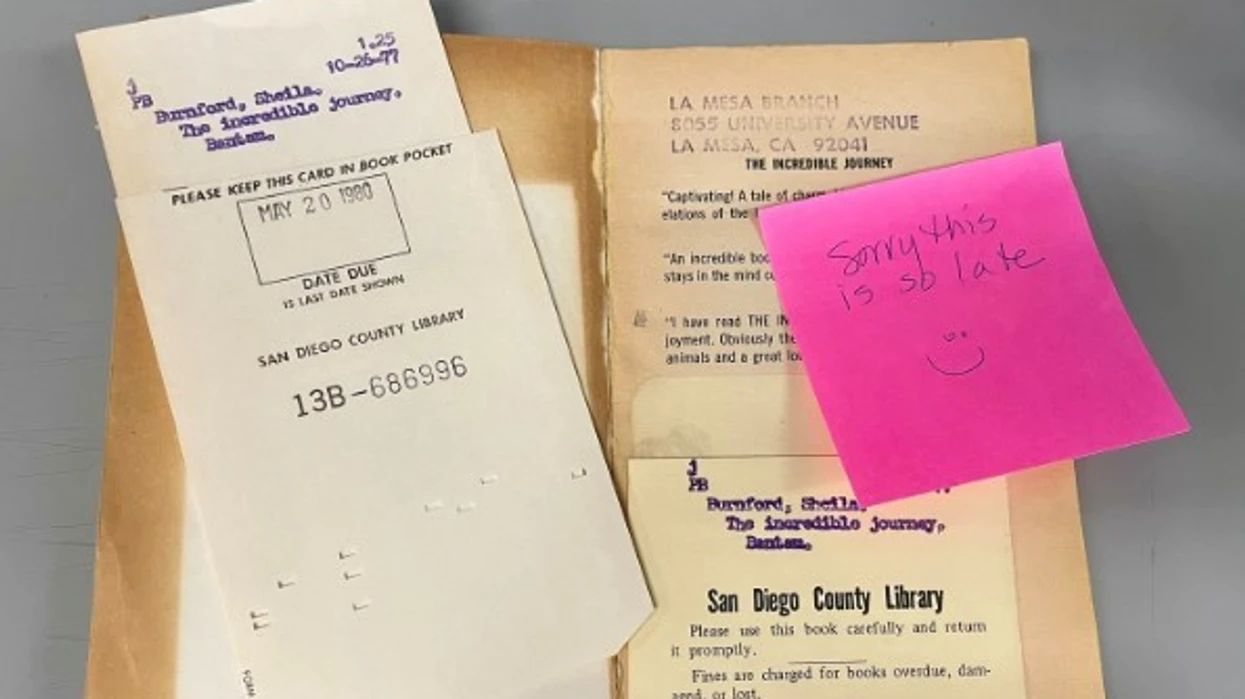 Punonjësja e bibliotekës në La Mesa, San Diego, hapi një pako anonime dhe brenda gjeti librin, i cili duhej të ishte kthyer më 20 maj 1980.