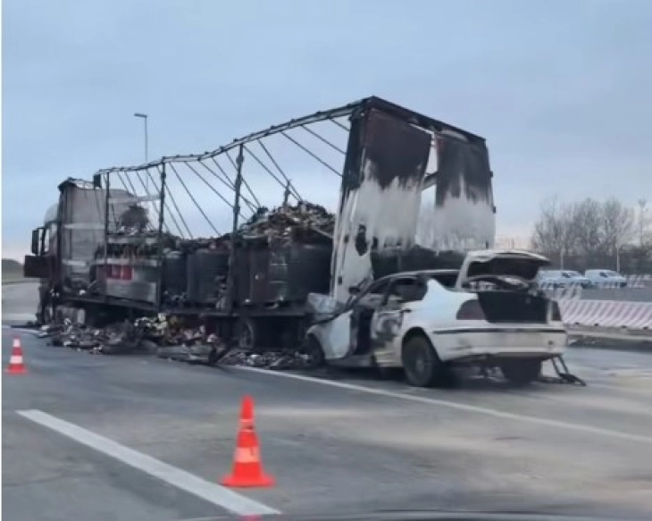 “Më 10.02.2026 në orën 23:00, në SPB Shkup është raportuar se në autostradën Shkup-Kumanovë, përpara kryqëzimit për autostradën anësore të Qytetit të Shkupit, ka ndodhur një aksident trafiku midis një automjeti pasagjerësh “BMW” me targa të Shkupit, i drejtuar nga A.V. (25) nga fshati Bujkovc, Shkup, dhe një automjeti mallrash “Mercedes” me gjysmërimorkio me targa të Negotinit, i drejtuar nga L.D. (56) nga fshati Brest, Shtip, gjatë të cilit të dy automjetet janë përfshirë nga flakët dhe janë djegur plotësisht. Shoferi i automjetit të udhëtarëve “BMW” ka pësuar lëndime të rënda në aksident, të cilat janë konfirmuar në kompleksin e klinikave “Nëna Terezë” në Shkup, informoi Ministria e Punëve të Brendshme.