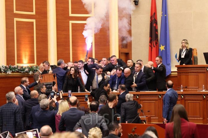 Deputetë e opozitës kanë tentuar të ulen në vendet e ministrave dhe është dashur ndërhyrja e gardës për largimin e tyre.