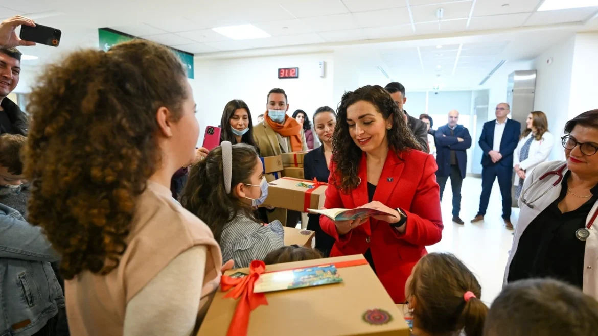 Në ditën e fundit të vitit, Presidentja e Republikës së Kosovës, Vjosa Osmani, ka qëndruar për vizitë në repartin e hemato-onkologjisë në Klinikën e Pediatrisë, ku janë duke u trajtuar fëmijë me sëmundje të rënda, për të cilët ajo përcolli mesazhe mbështetjeje dhe solidariteti.
