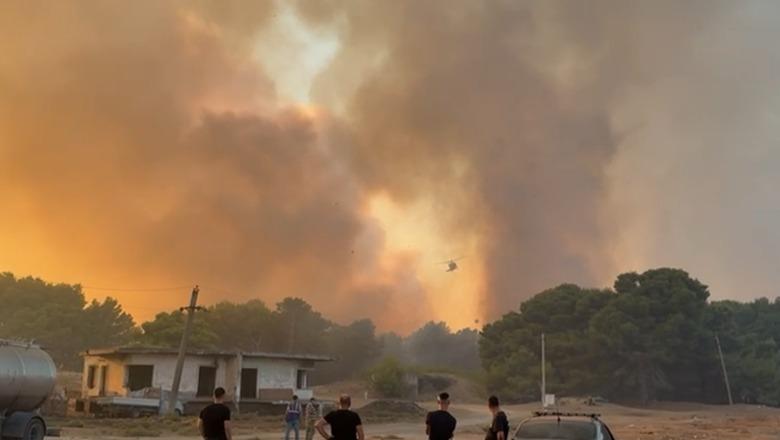 Vatra e zjarrit në pyllin e Poros në Vlorë ka marrë përmasa më të mëdha. Flakët po djegin pishat në këtë zonë, teksa pamjet tregojnë për një situatë apokaliptike. Tymi i dendur ka mbuluar zonën dhe është përhapur drejt qytetit të Vlorës. Nga ajri po luftojnë intensivisht dy helikopterë për të shuar zjarret.