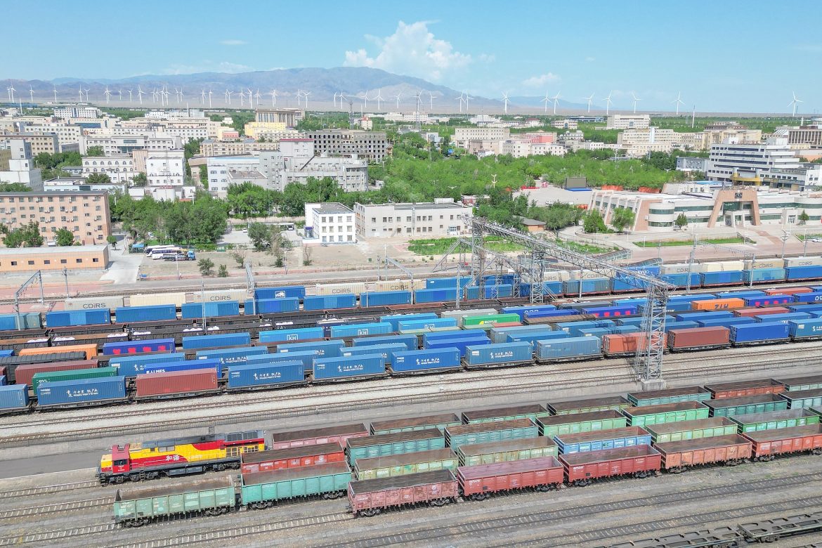 Një tren mallrash, i ngarkuar me produkte të nevojshme të përditshme, pjesë automjetesh dhe mallra të tjera, u nis të mërkurën nga Porti Alashankou në Rajonin Autonom Xinjiang Ujgur të Kinës Veriperëndimore, drejt Malaszewicze, Poloni.