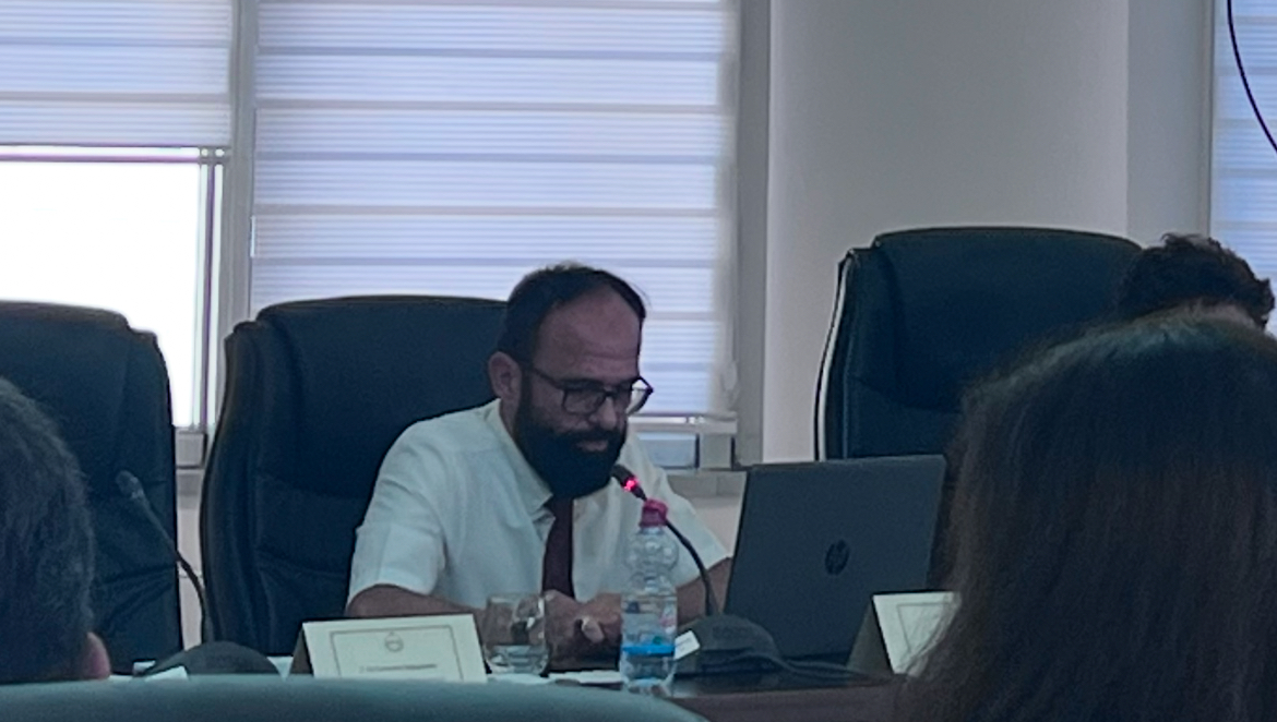 Prezantimi i tij në tryezën e rrumbullakët mbi “Zbatimi i Aktit të Gjykatës Kushtetuese: Procedura e kushtetutshmërisë dhe ligjshmërisë (iniciativa)” u zhvillua plotësisht në gjuhën shqipe, pavarësisht se në fillim pati rreth 10 minuta probleme me përkthimin.