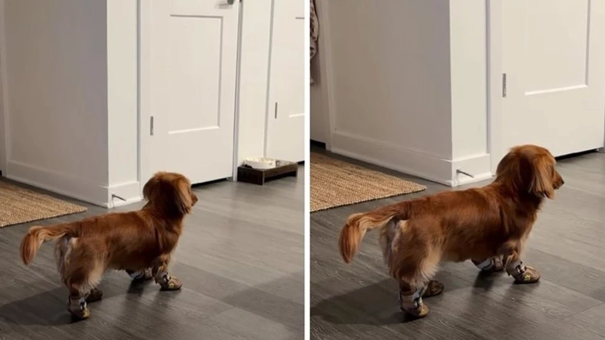 Megjithatë, sapo u përpoqën t’i vendosnin çizmet, Gill refuzoi të bënte edhe një hap – u ngrit si statujë, me bishtin pezull dhe pa lëvizur, vetëm duke fikur përpara.