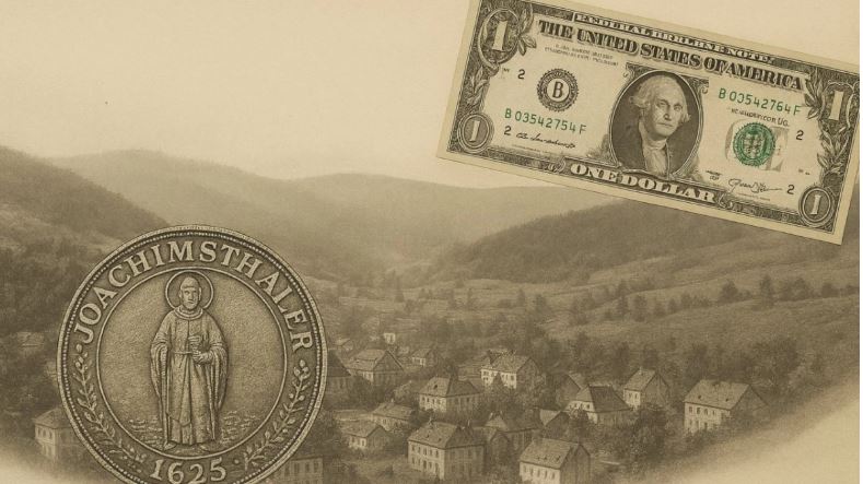 Historia fillon në vitin 1516, kur Konti Hieronymus Schlick themeloi qytetin e Joachimsthal (Lugina e Joachim-it). Katër vjet më vonë ai mori lejen për të prerë monedha. Kështu lindi Joachimsthaler-i , i cili shpejt u shkurtua në thaler, që në anglisht i dha jetë fjalës dollar.