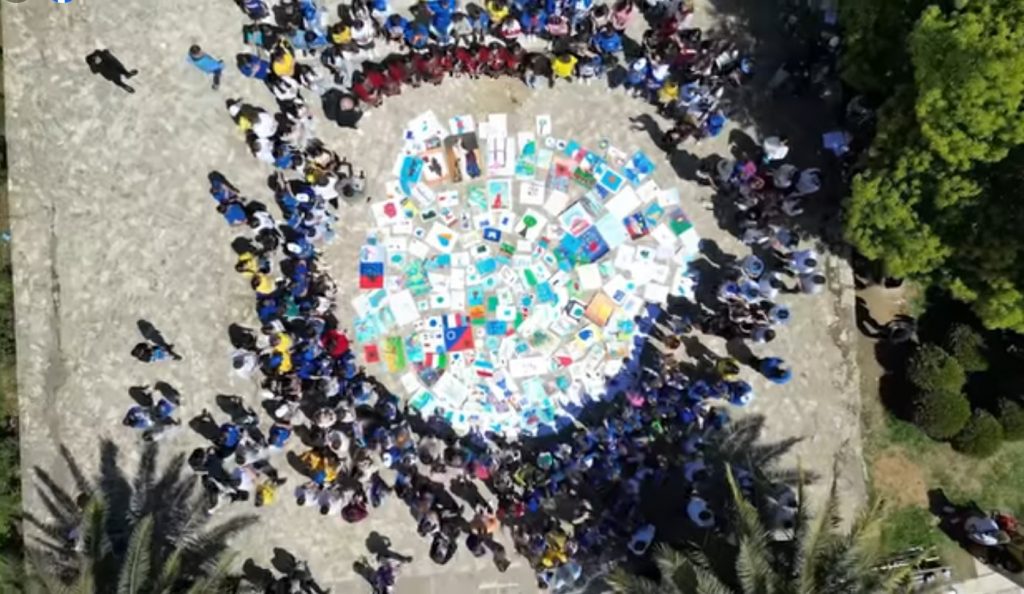“Europa në sytë e fëmijëve” është atelia gjigante e cila po udhëton në çdo qytet të Shqipërisë dhe ku fëmijët shqiptarë përcjellin përmes artit këndvështrimin e tyre për Europën.