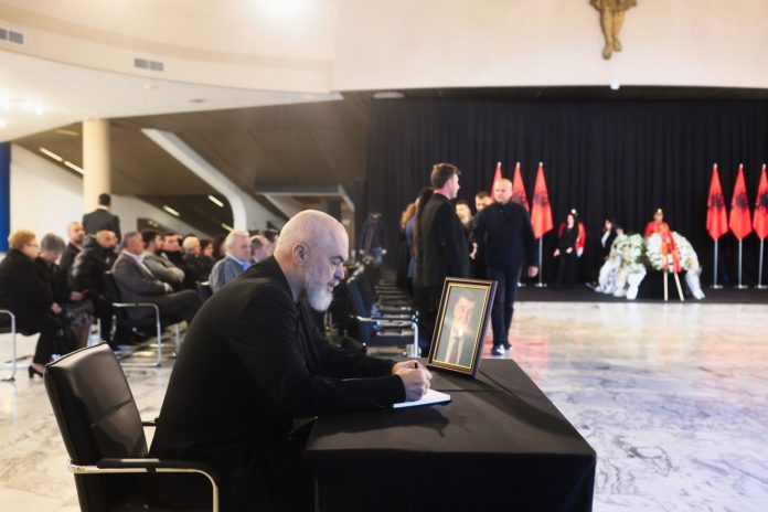 Kryeministri Edi Rama kreu homazhe, ndërsa la dhe një shënim në librin e ngushëllimeve.