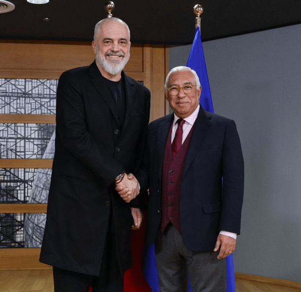 “Momente përpara darkës së mbrëmshme të punës në Bruksel, me Presidentin e Këshillit Europian dhe mikun tim të çmuar, António Costa”, u shpreh Kryeministri.