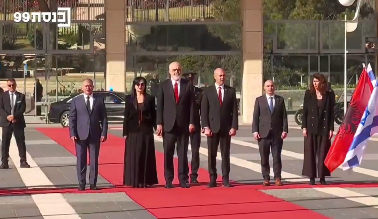 Kryeministri Edi Rama u mikprit sot, gjatë vizitës së tij në Izrael, nga kryetari i Knessetit (Parlamentit të Izraelit) Amir Ohana në Knesset Plaza me një ceremoni të posaçme, ku u luajtën himnet kombëtare të vendeve dhe delegacionet u përshëndetën nga rojet e nderit.