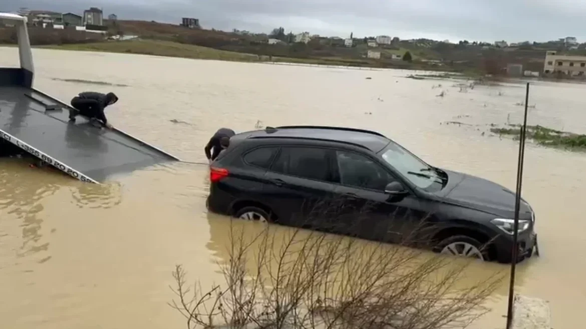 Një familje nga Kosova së bashku me tre fëmijët raportohet se kanë mbetur të bllokuar në makinë nga përmbytjet në Shqipëri.