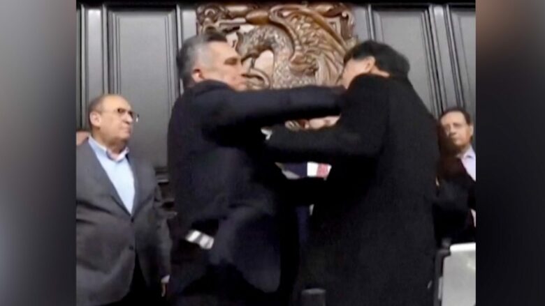Senati i Meksikës shpërtheu në dhunë të mërkurën me grushte, shtyrje dhe britma, pasi një udhëheqës i partisë opozitare kapi presidentin e dhomës ndërsa seanca po përfundonte.