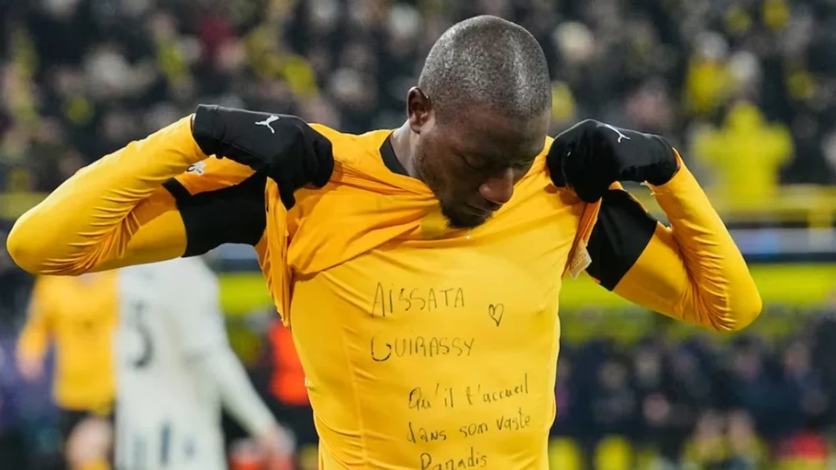 Pas realizimit, Guirassy ngriti fanellën dhe zbuloi një mesazh të shkruar në bluzën e brendshme: