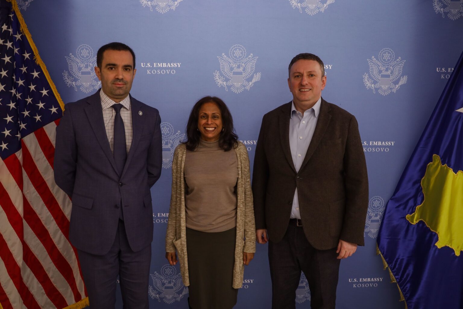 E ngarkuara me punë në Ambasadën e ShBA-së në Prishtinë, Anu Prattipati, ka pritur në takim drejtorin ekzekutiv të Odës Ekonomike Amerikane në Kosovë (AmCham/OEAK), Arian Zeka, dhe presidentin e Bordit të OEAK-së, Lorik Fejzullahu.