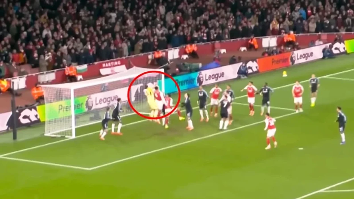 Një nga portierët më të mirë në botë reagoi me dëshpërim pas një goditjeje nga këndi nga Bukaya Saka, pasi nuk arriti të kapte topin e lartë që i ra në krahë.