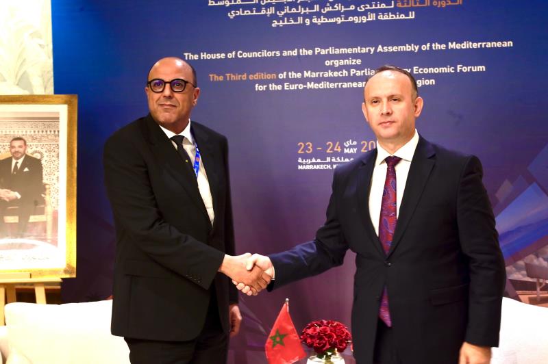 Rabat, 24 maj – Në kuadër të Forumit Parlamentar Ekonomik të APM-së në Marrakesh, Mbretëria e Marokut, Kryetari i Kuvendit të Republikës së Maqedonisë së Veriut, Afrim Gashi, zhvilloi takim dypalësh me Kryetarin e Dhomës së Lartë të Parlamentit të Marokut, Mohamed Old Erashid.