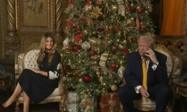 Të ulur pranë pemës së Krishtlindjeve në rezidencën e tyre në Mar-a-Lago në Florida, presidenti dhe zonja e parë iu përgjigjën telefonatave nga fëmijët e bëra nga Komanda e Mbrojtjes Hapësinore të Amerikës së Veriut (NORAD), e cila gjurmon rrugën e Babagjyshit nëpër botë çdo natë Krishtlindjesh.