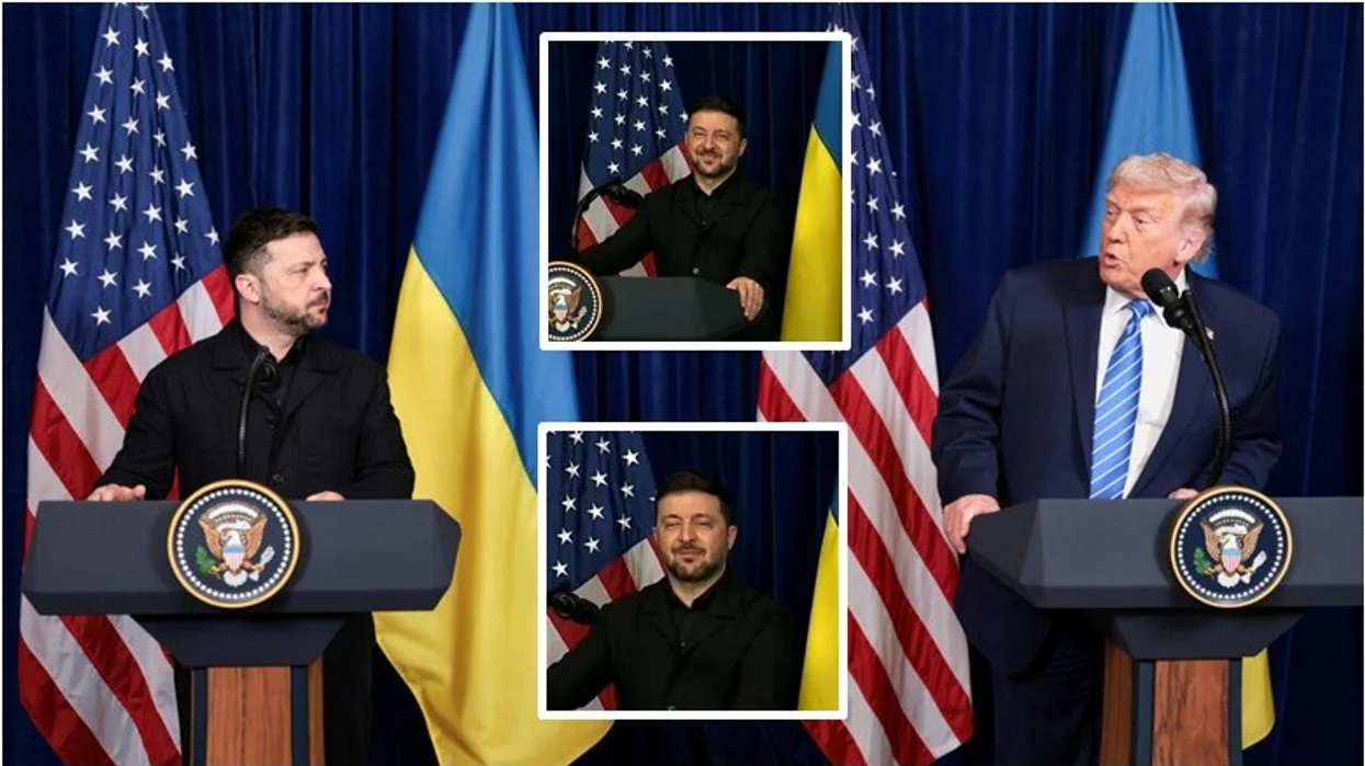 Imazhet e shpërndara tregojnë momentin kur Zelensky duket i habitur, pastaj qesh.