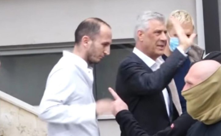 Pamjet që kanë ofruar mediat shihet që doktori në fjalë qortohet nga një sigurim me maskë të Speciales që e përcillte Thaçin.