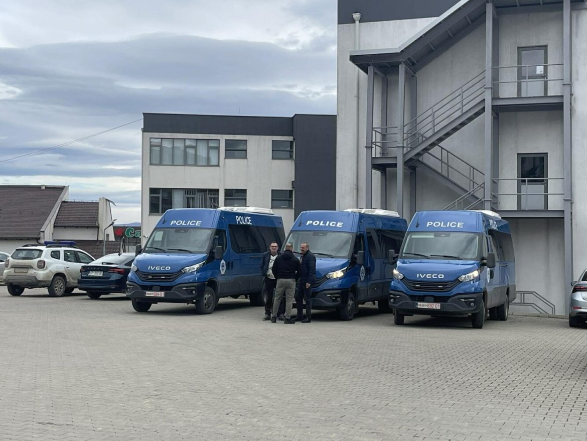 Në oborrin e këtij stacioni, shihen edhe veturat e policisë dhe zyrtarë policorë.